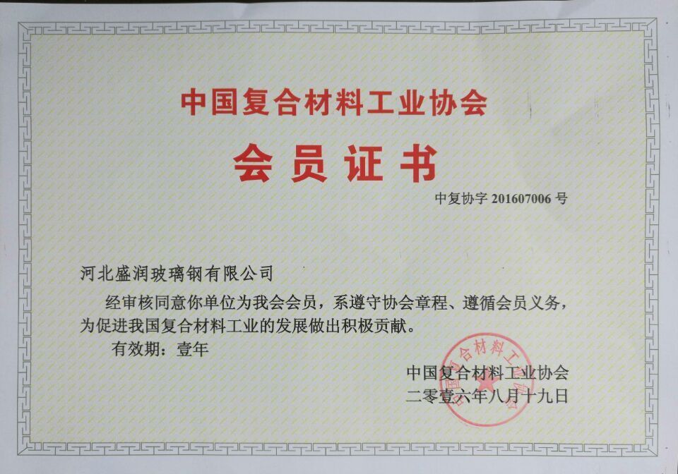 2016年8月19日 河北盛潤玻璃鋼有限公司加入中國復合材料工業(yè)協(xié)會